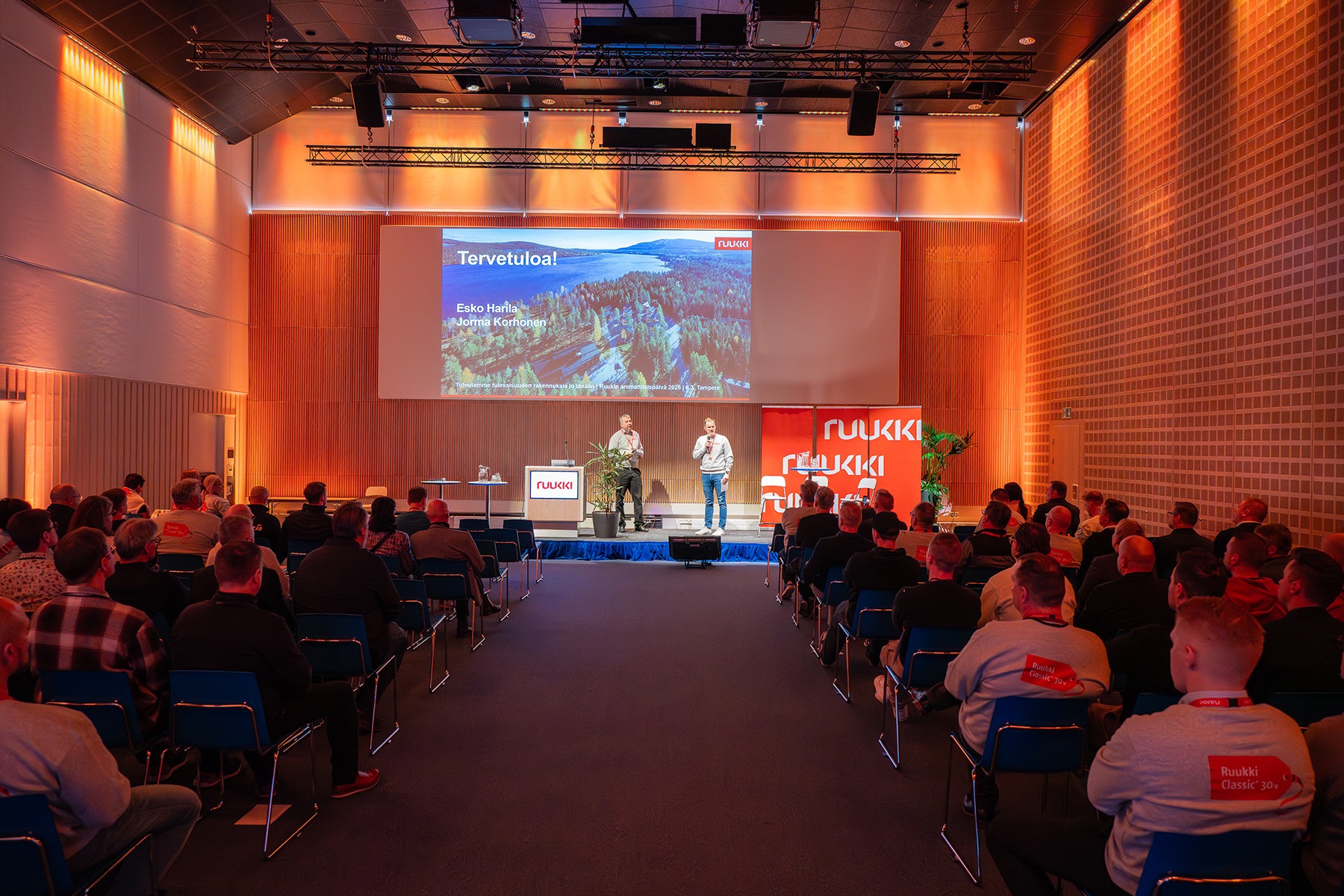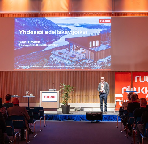 Tampere Hall filled up already in the morning with a record number of cheerful guests – customers, partners and Ruukki employees. Before lunch, the program focused particularly on future prospects. In his presentation, CEO Sami Eronen reviewed Ruukki’s strengths as a partner and the expected growth of the market. Aki Kangasharju, Managing Director of the Research Institute of the Finnish Economy (ETLA), focused in his presentation on analyzing the economic situation and the role of construction within it.