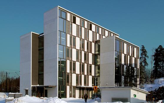Ruukki's steel-based external wall elements, which feature graphical patterns for optical effect, were selected for the building's facade surface. The patterns enabled the creation of an expressive-looking facade cost-effectively.