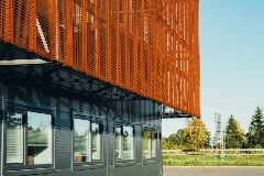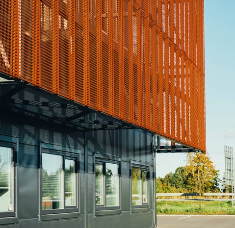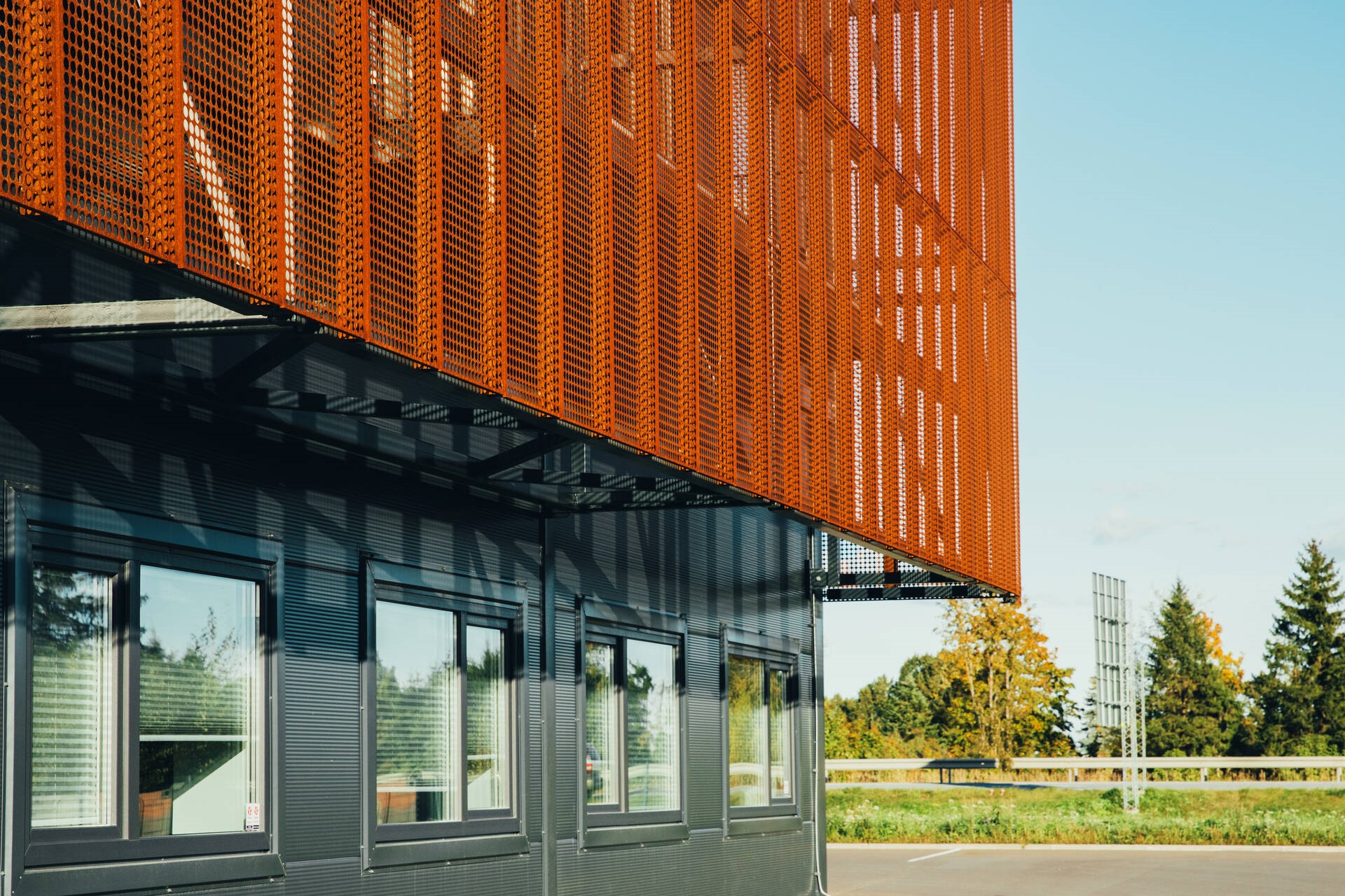 The building's unique look is given by Ruukki's CNC perforated Cor-Ten® facade, which are designed to provide shade from the blinding sun. A total of 570 m2 of Cor-Ten® facade were supplied, together with Cor-Ten® gutters and fasteners.