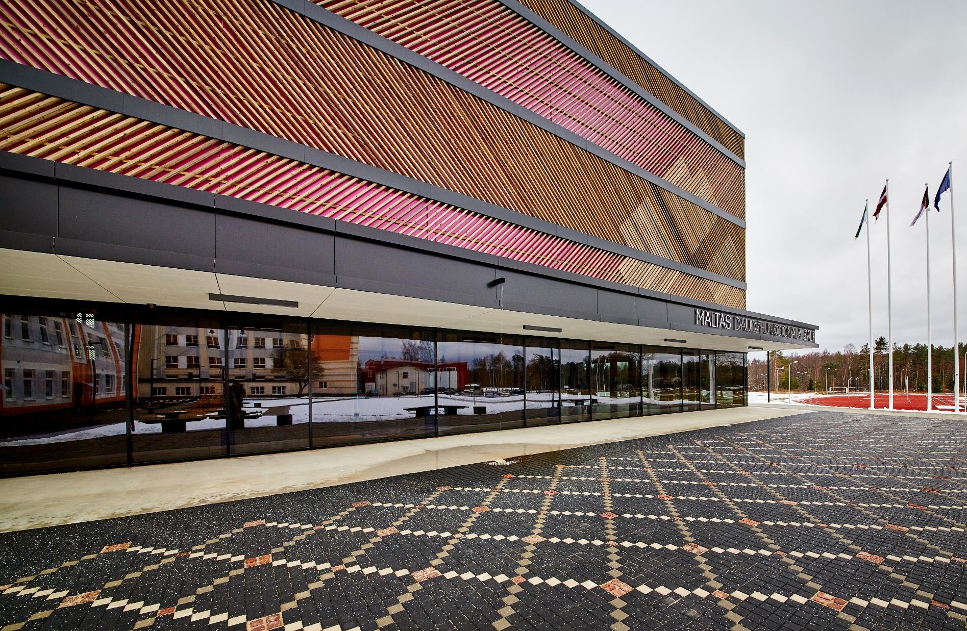 MALTA multifunctional hall joins two schools in Malta, Latvia. The planned gym will serve as a municipal sports centre.