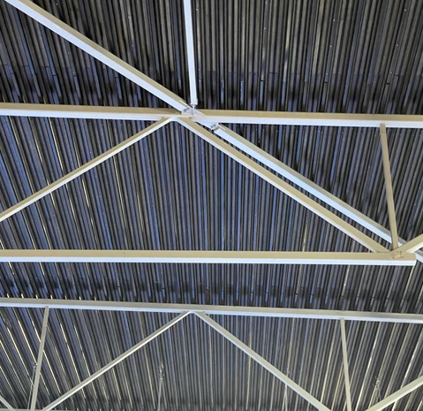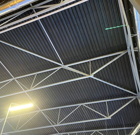 In this paddle center, the free height of 11 meters, the ceiling plays a significant role when looking for a functional sound environment. Originally, the hall's reverberation time, i.e., how long the sound reverberates after it is produced, was estimated to be about 12 seconds without sound environment solutions. The goal was to get the reverberation time under 3 seconds, and this was calculated to be possible with the basic solution of the LBS T153 AcuB load-bearing acoustic profile in the ceiling. The reverberation was measured when the building envelope was ready.