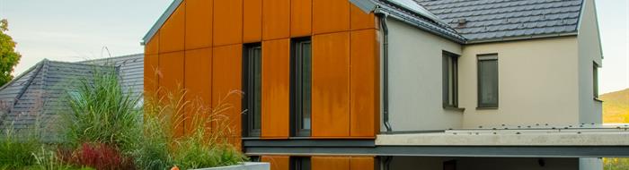 Vytvořte harmonický, rezavý vzhled provětrávené fasády s kazetou Liberta Cor-Ten 700.