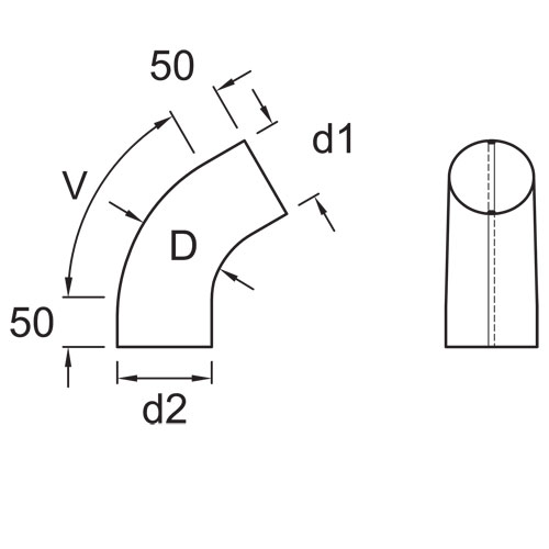 | Průměr (D) mm | Úhel (V) ° | Průměr (d1) mm | Průměr (d2) mm |