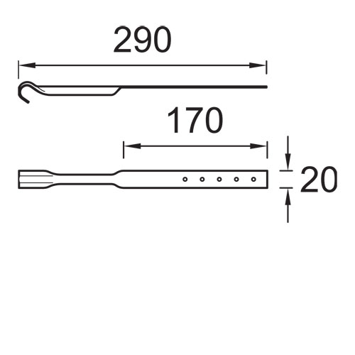 Úchyt žlabu - protihák - dodatečný prvek vhodný zejména na zvýšení pevnosti háku proti nadměrnému zatížení (led, sníh) a pomáhá rovněž háku udržet daný sklon žlabu.