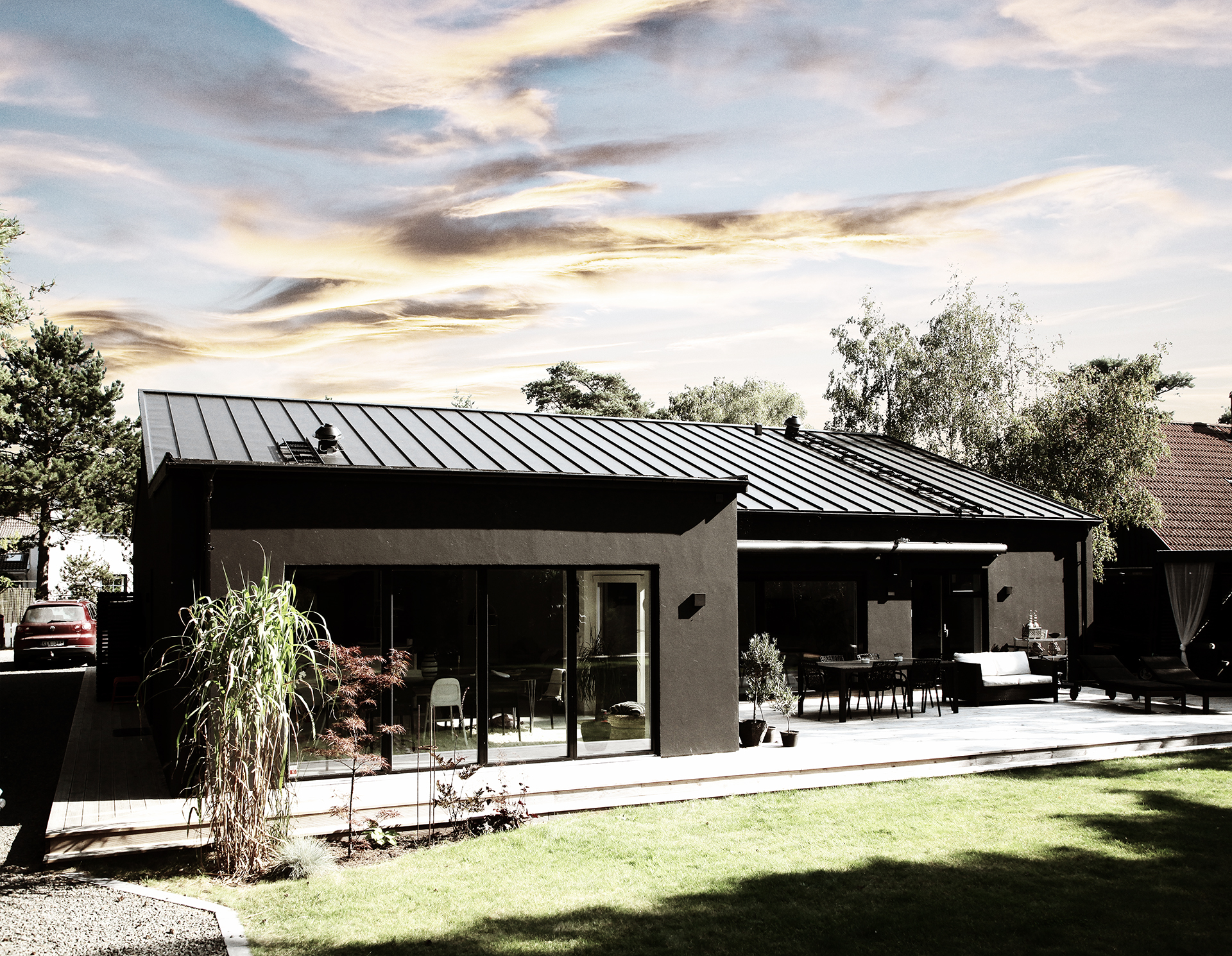 Plannjas udvalg af farver kommer fra naturens egen farveskala og knytter sig til de klassiske elementer, jord, vand, luft og ild. Plannja Colour System integrerer farverne naturligt, som en del i den æstetiske helhed.
