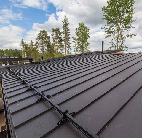 Ruukki Classic® Silence on teknisesti ja ulkonäöllisesti upeasti viimeistelty katto. Lisäksi se on hiljainen ja vaimentaa ääniä tehokkaasti. Vähäeleisen tyylikäs ja ajaton muotoilu sopii niin rintamamiestaloihin kuin moderneihin kivitaloihin. Kaikki katon osat on mietitty viimeistä piirtoa myöten. Piiloon jäävät kiinnitysruuvit, sauman sulkimet, räystäältä taitettu etureuna ja tasalaatuinen sileä pinta takaavat viimeistellyn ulkonäön.