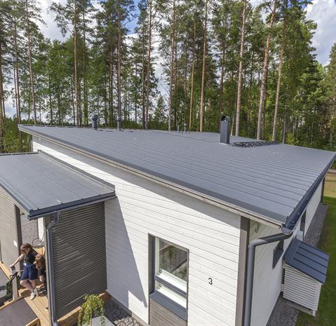 Ruukki Classic® on teknisesti ja ulkonäöllisesti upeasti viimeistelty katto. Vähäeleisen tyylikäs ja ajaton muotoilu sopii niin rintamamiestaloihin kuin moderneihin kivitaloihin. Kaikki katon osat on mietitty viimeistä piirtoa myöten. Piiloon jäävät kiinnitysruuvit, sauman sulkimet, räystäältä taitettu etureuna ja tasalaatuinen sileä pinta takaavat viimeistellyn ulkonäön.