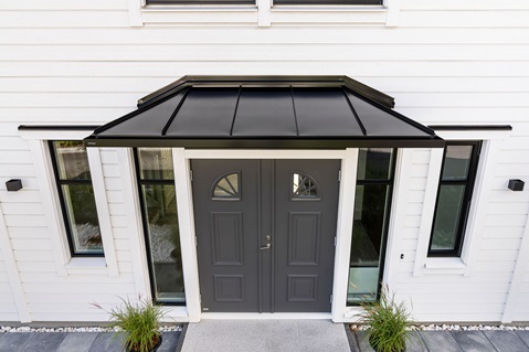 Ruukki-ovikatoksella viimeistelet Ruukki-kattokokonaisuutesi tyylikkäästi. Markkinoiden vakaimmat ovikatokset valmistetaan käsityönä Ruotsissa ja ne on hyväksytty käyttöön kaikilla lumikuorma-alueilla.