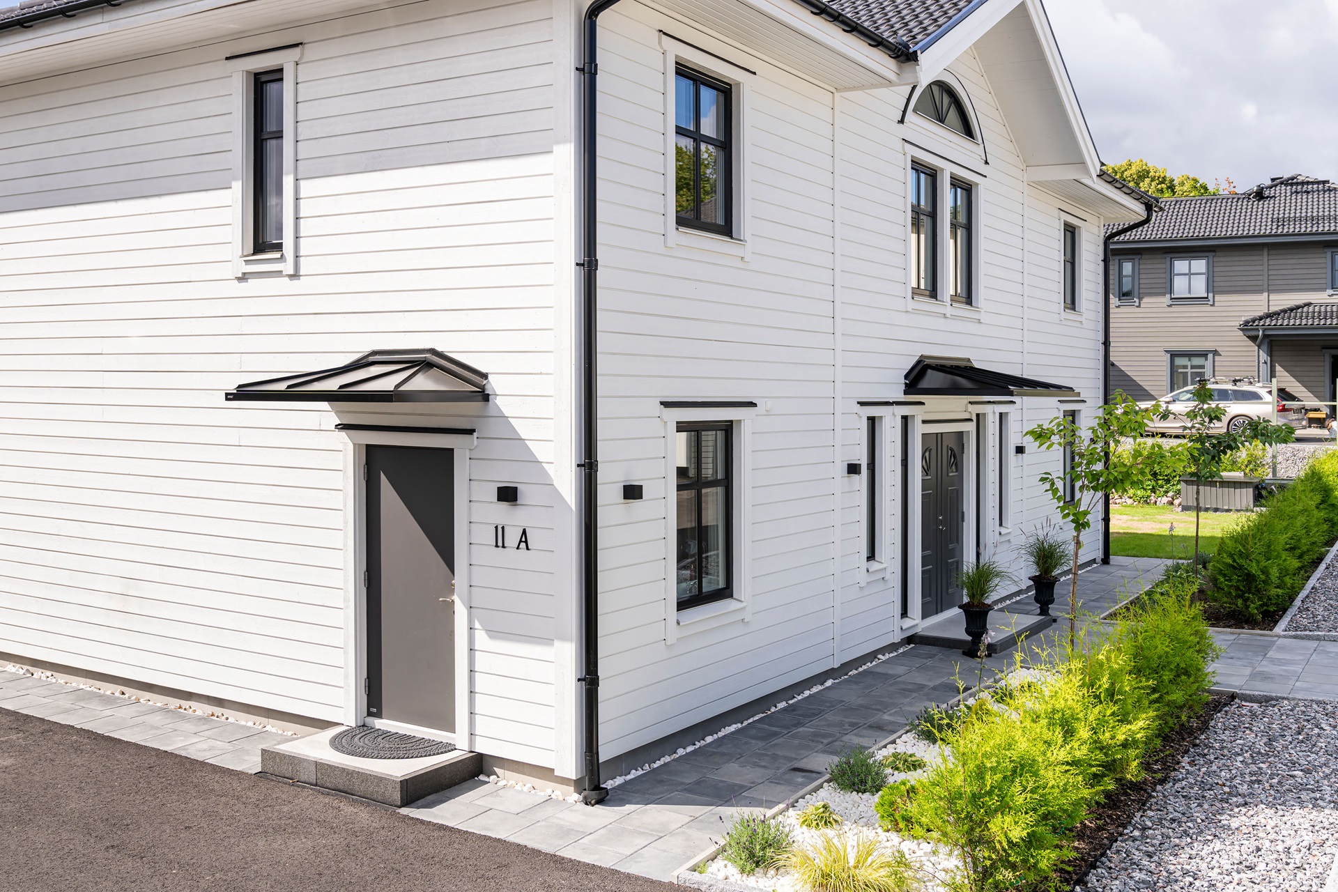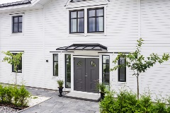 Alla näet valikoimassamme olevat ovikatosmallit - Hipped ja Classic. Voit valita katoksen päällysosan kanssa samanvärisen alakaton tai valkoiseksi maalatun alumiinin. Mikäli haluat valaista sisäänkäyntisi, voit valita katokseen upotetut kohdevalot, joita on saatavana kolmessa eri värissä.