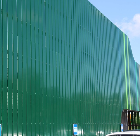 Kauppakeskuksen julkisivu uudistettiin kokonaan ja sen ulkoasu päivitettiin nykyaikaisempaan ilmeeseen. Kohteeseen räätälöitiin kaksoisjulkisivu U-orsien avulla. Julkisivun värimaailma (eri RAL-sävyt, jotka on maalattu molemmin puolin) ja muotokieli toteutettiin kohteen arkkitehdin yksilöllisen idean pohjalta.