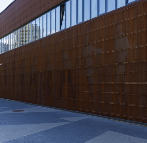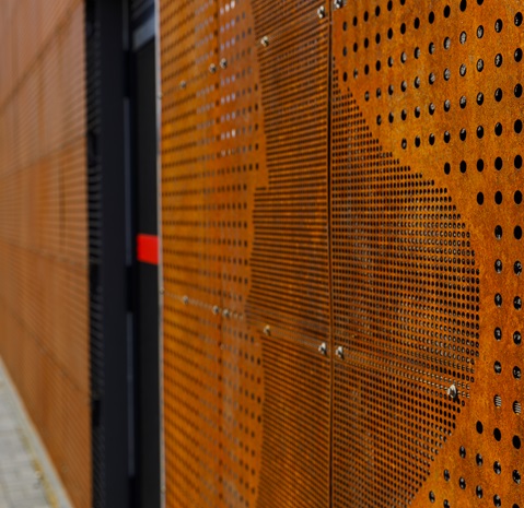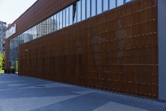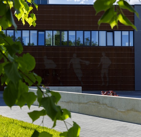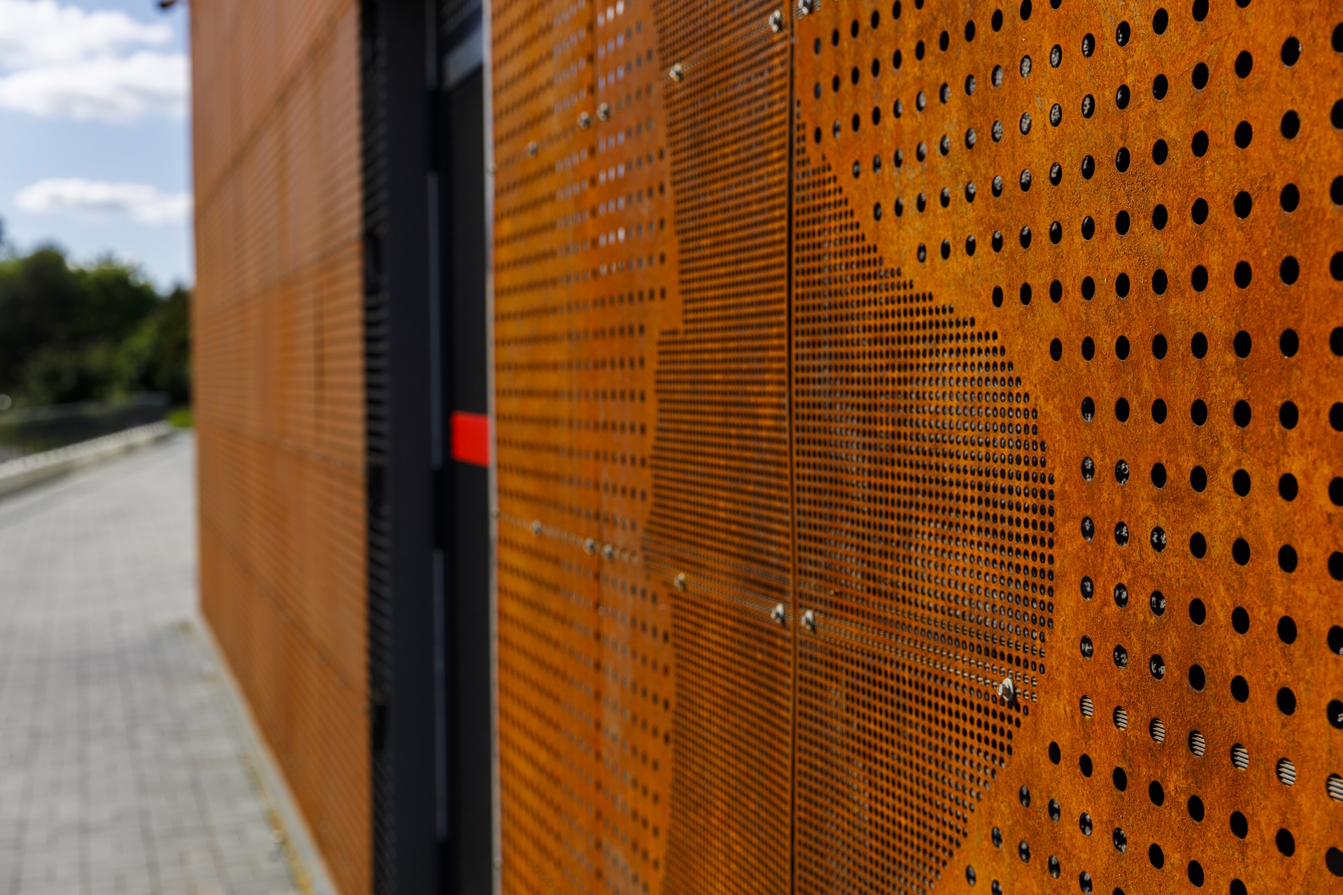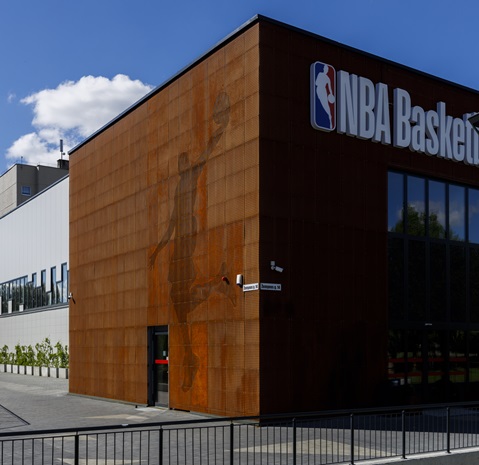 Ruukki Products AS šiam projektui tiekė apie 500 kv.m fasado apdailos ir karkaso iš rūdinto COR-TEN® plieno. Apdailos išskirtinumą padeda sukurti speciali Art perforacija – naudojant skirtingus perforacijos dydžius ant fasadų buvo atvaizduoti krepšininkų siluetai.