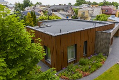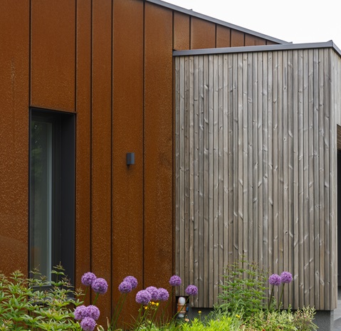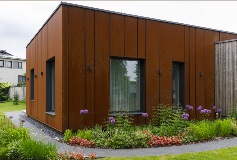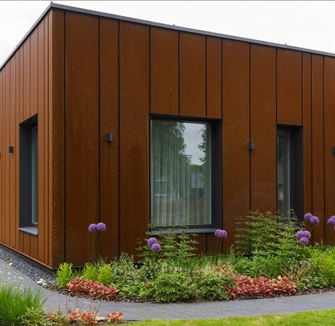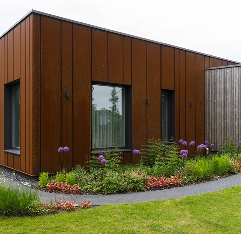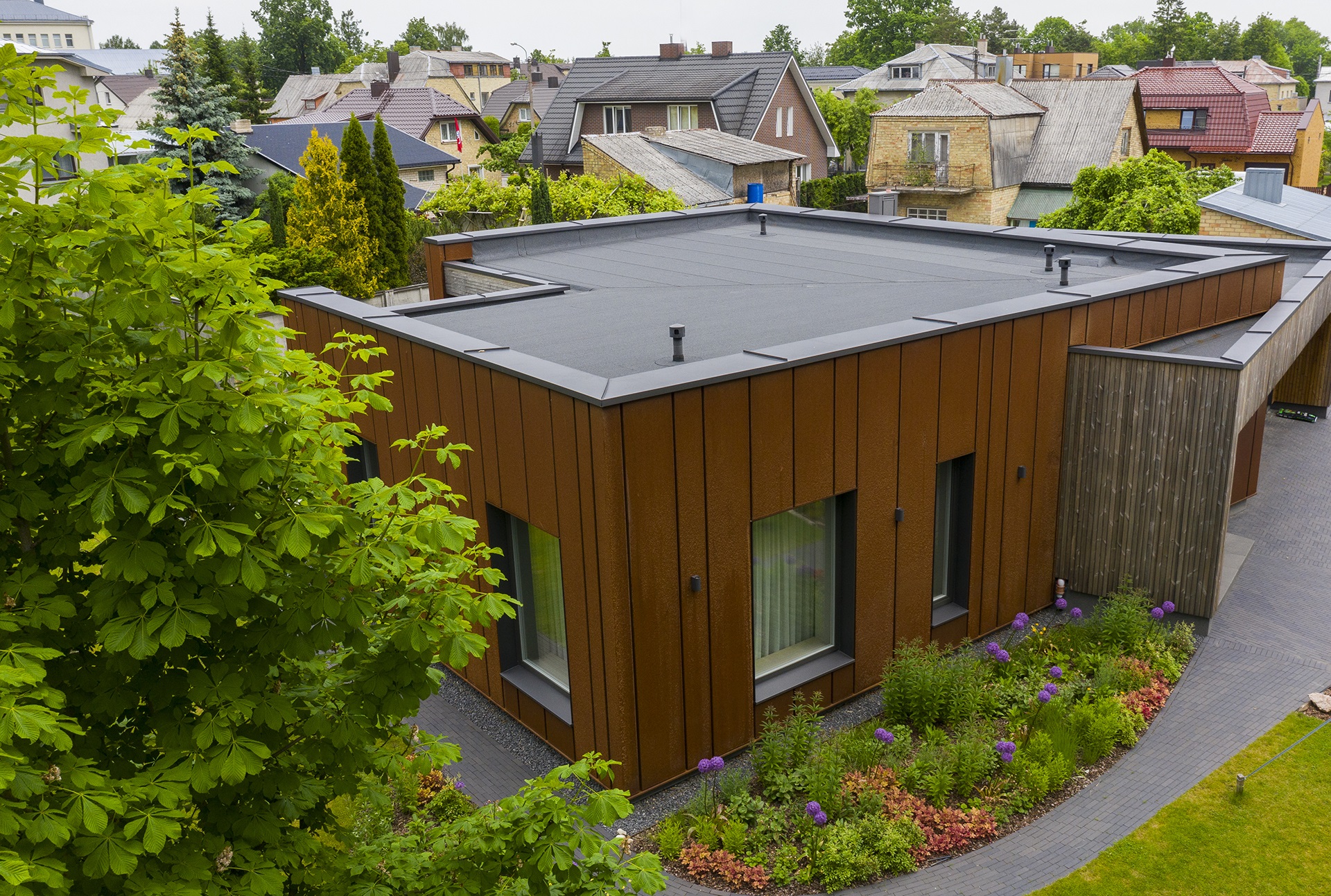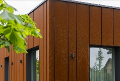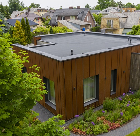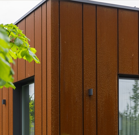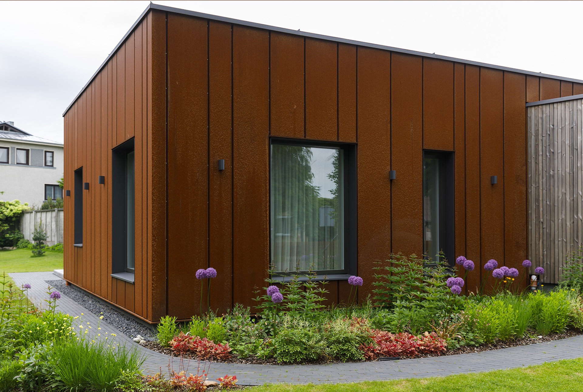 Individualaus namo Šiauliuose fasadą architektas suprojektavo derindamas Ruukki Cor-Ten® plieno pagal užsakymą pagamintas lameles ir medinių lentelių apdailą taip sukurdamas gražų derinį ir tuo pačiu parodydamas medžiagų kontrastą. Panaudotos medžiagos puikiai dera aplinkoje, o ypač patvarus Ruukki Cor-Ten® lamelių paviršius, laikui bėgant pasidengiantis patina, atrodo moderniai ir estetiškai.