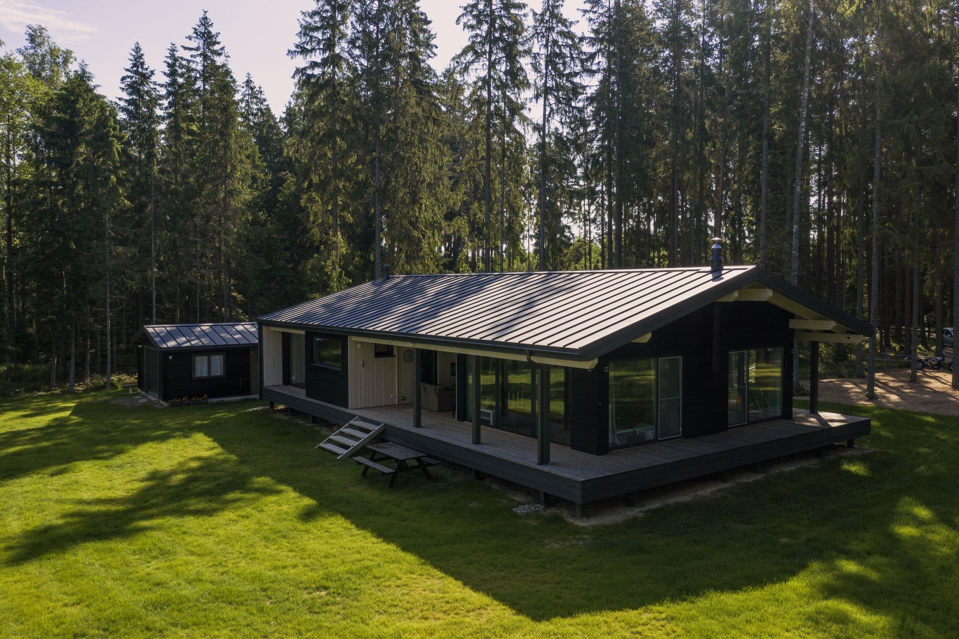 Skandināvu minimālisms dabiski ieplūst meža ielokā un māja harmoniski savienojas ar dabu. Vieta, kur gūt mieru un smelties dabas spēku.