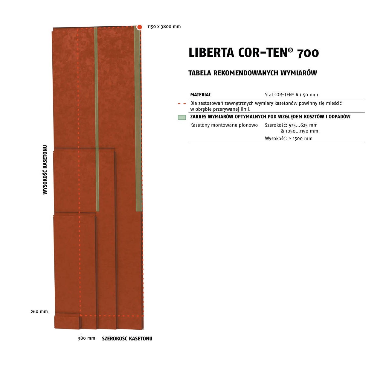 Stal Cor-Ten A używana jest do produkcji kasetonów (S355J0WP-COR-TEN A).