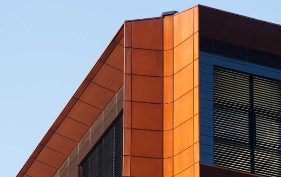 Elewacja obiektu wykonana została ze stali Cor-Ten, którą przykryto żelbetonową konstrukcję. Ruukki dostarczyło ponad 30 ton blachy płaskiej Cor-Ten A, z której wykonano nietypowe panele elewacyjne. Stalowa okładzina o rdzawym kolorze dobrze komponuje się z dużymi powierzchniami przeszkleń.