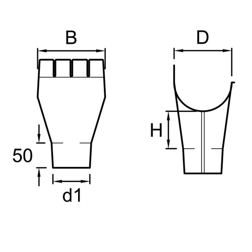 Średnica (D) mm | Średnica (d1) mm | Wysokość (H) mm | Szerokość (B) mm |